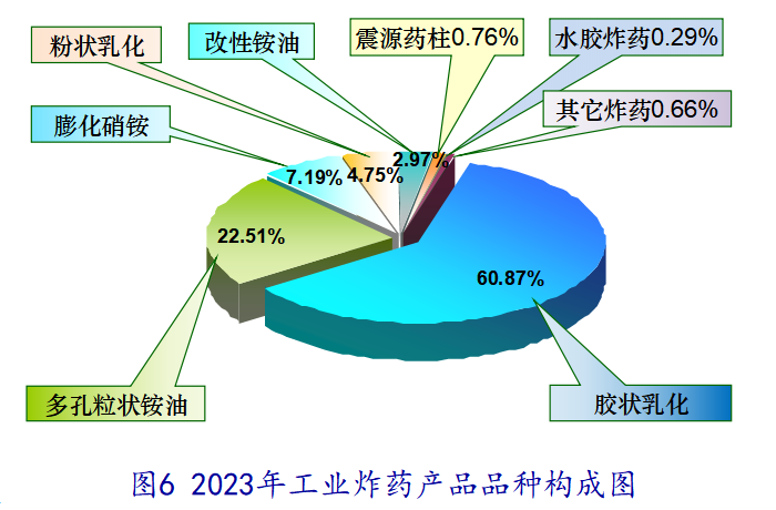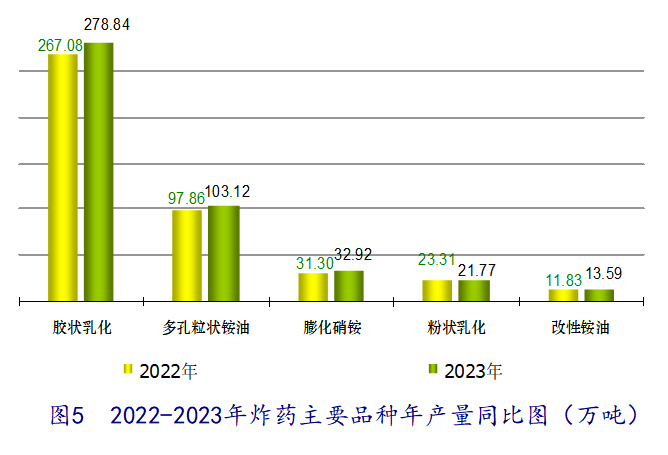 從工業(yè)炸藥品種產(chǎn)量變化情況看,2023年工業(yè)炸藥總產(chǎn)量為458.10萬(wàn)噸,各品種產(chǎn)量占比基本與去年保持一致。